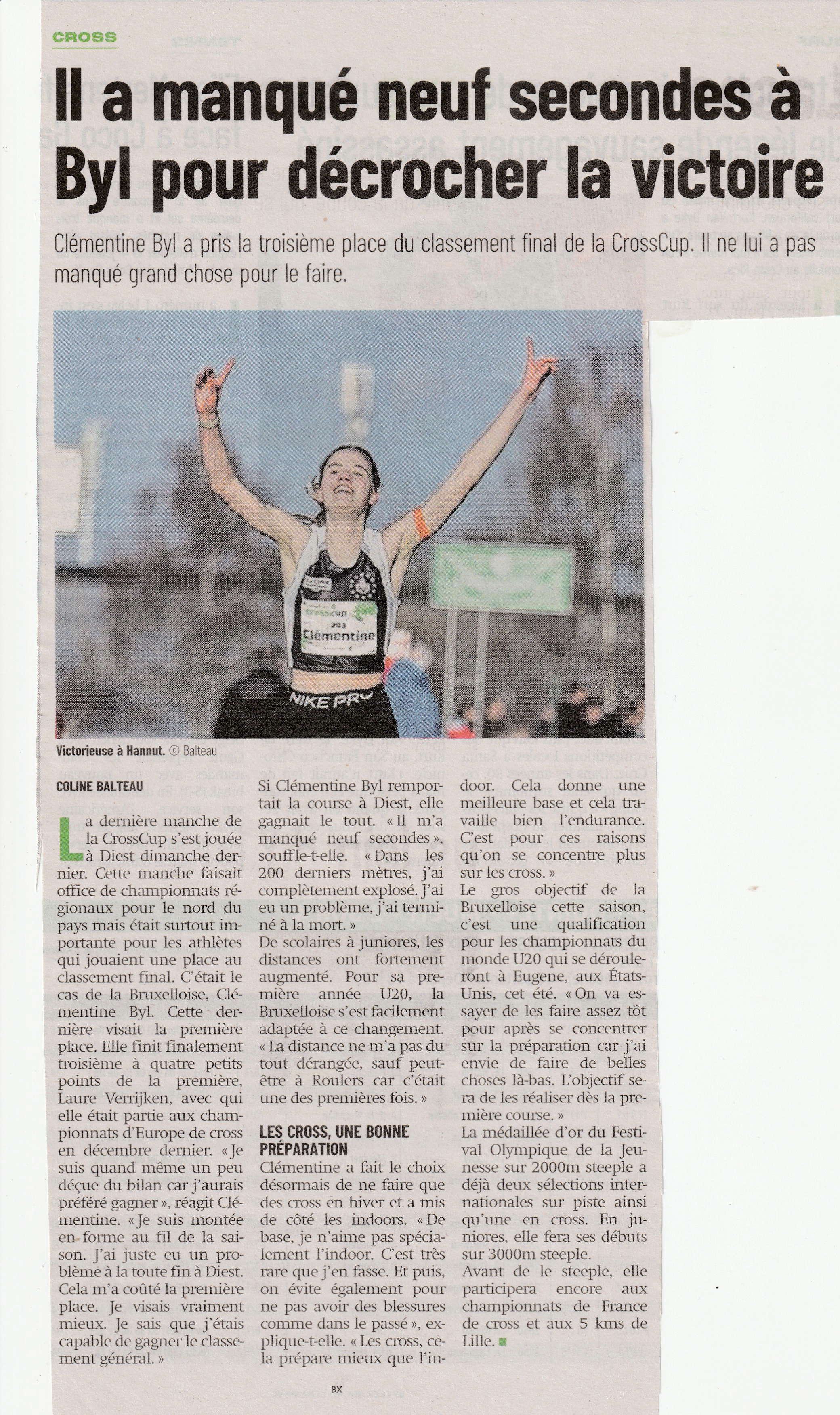 - Victoire de Clémentine Byl au Youth Mémorial Van Damme sur 1000m